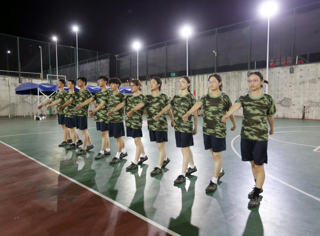 夜幕降临,嘹亮的集结哨声再次响起,同学们迅速集合,训练场上灯光如昼,映照着他们坚毅的脸庞。在经过短暂的军训成果展示后,嘹亮的军歌从训练场中传出来。随后,同学们围坐在一起,轻松、快乐地展示自己的才艺,训练场上青春洋溢。